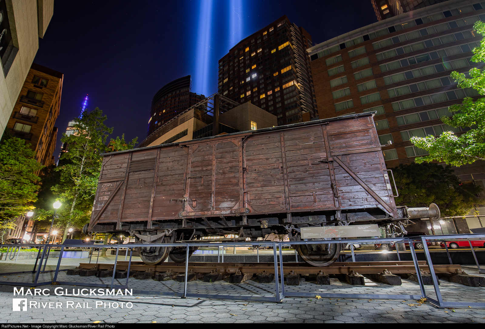 Not long ago, Not far away. This exhibit at the Museum of Jewish Heritage - A Living Memorial to the Holocaust in Manhattan, New York is part of an exhibition on Auschwitz. This car is one of 120,000 Model 2 freight wagons manufactured between 1910-1927 for the Deutsche Reichsban (German State Railway). It is part of a temporary exhibit on display until May 2, 2021. "From the summer of 1940 to early 1945, people targeted by the Nazis—Jewish people, as well as European resisters to German rule, hostages, Soviet prisoners of war, Roma, and others—were packed into freight cars such as this and forcibly transported to destinations unknown to them. For many the destination was a place in German-annexed Poland: Auschwitz." In the background, the 9/11 Tribute In Lights illuminate the scene on the night of Friday, September 11, 2020. 19 years ago this day on 9/11/2001, another tragedy occurred when the World Trade Center towers were destroyed in a terrorist attack less than a half mile from this location. The lights shine from sunset to sun up one day a year near the location of the WTC and the 9/11 Tribute Museum, an annual memorial of that horrific day. Not long ago, Not far away. More at: https://mjhnyc.org/exhibitions/auschwitz/ https://www.911memorial.org/visit/memorial/tribute-light