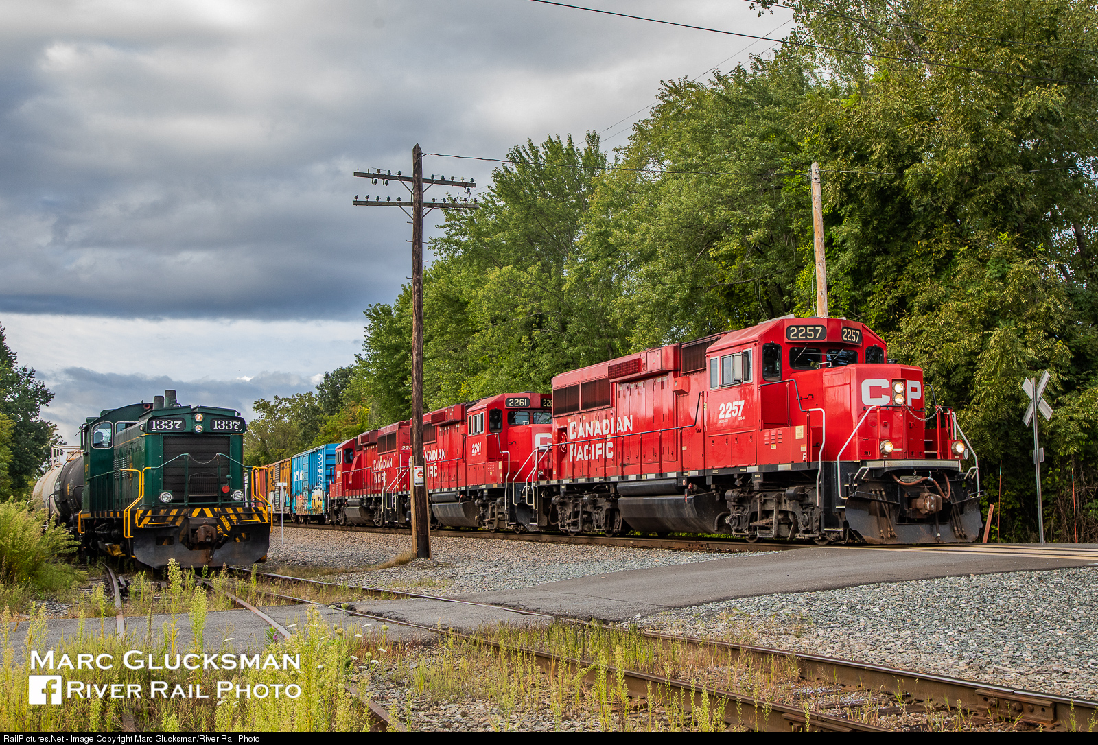 Moving at Momentive. SMS Lines 1337 (SW1200RS, née-CN 1337) is working job WF-1 at the Momentive facility in Waterford, New York on Tuesday, September 8, 2019 and is in position for the arrival of Canadian Pacific 2257 (GP20C-ECO) of D45. While the train frequently operates at an hour when it would be against the sun to photograph most of the run, a bit of cloud cover evens the lighting on this day.