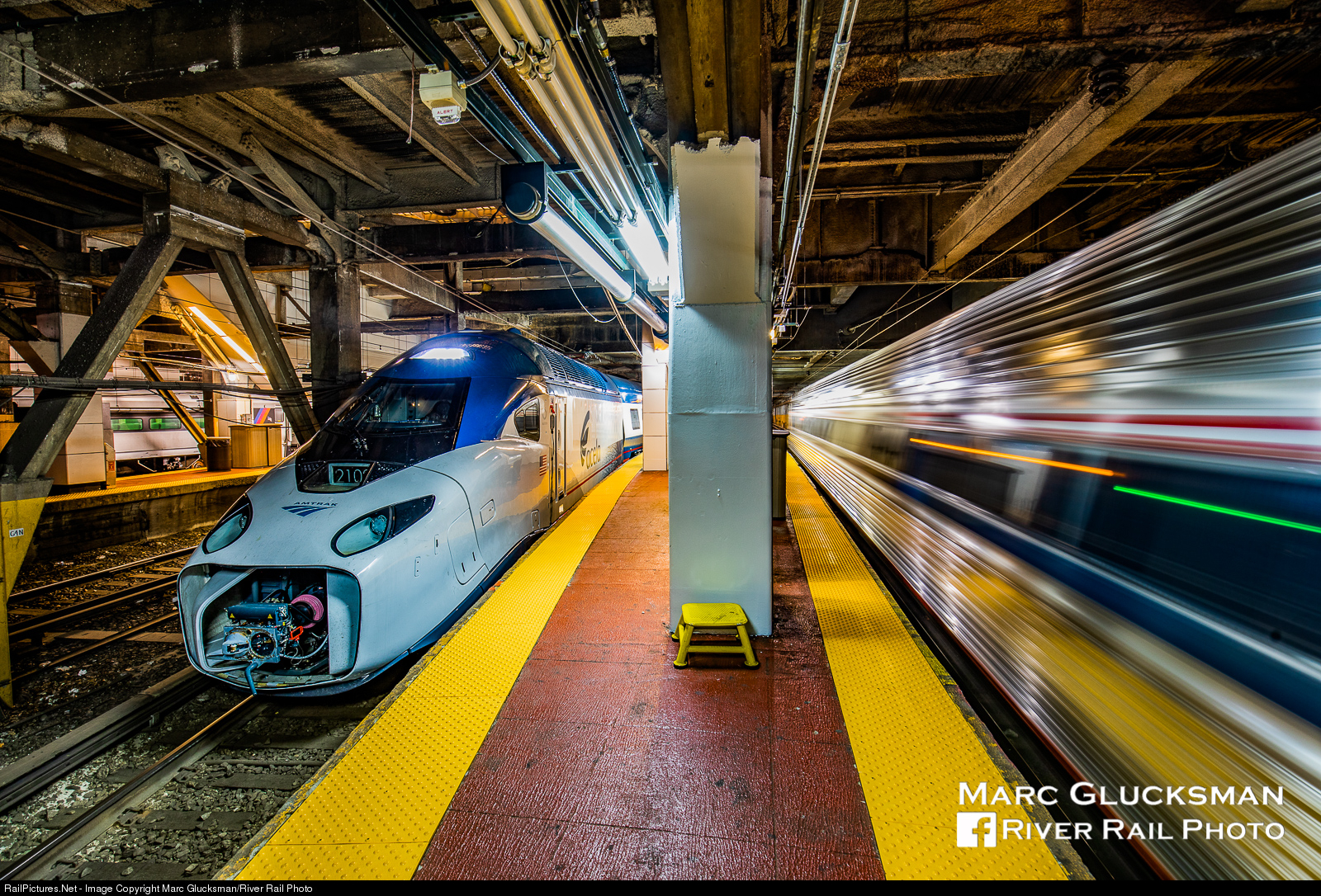 | First time in your future home. Amtrak's new Alstom Avelia Liberty (Acela 21) finally visited New York Pennsylvania Station for the first time on the night of Thursday, September 24, 2020. It has been testing in New Jersey and points south for the past few months, but went to GATE interlocking after leaving NYP to test its ability to run through the voltage change on the overhead electric catenary system. Train 179 departing on track 8 for Sunnyside Yard provides a contrast between the new and the old. |