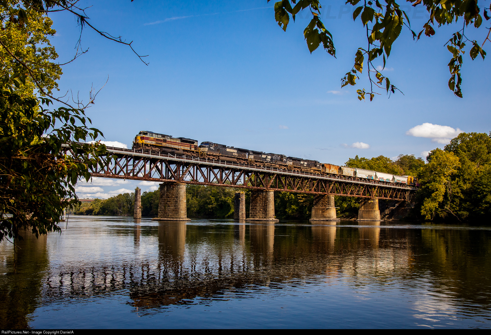 Westbound manifest NS 15T has now made it's way onto the Pulaski district as it crosses over the New River with the Lackawanna heritage unit leading the way.