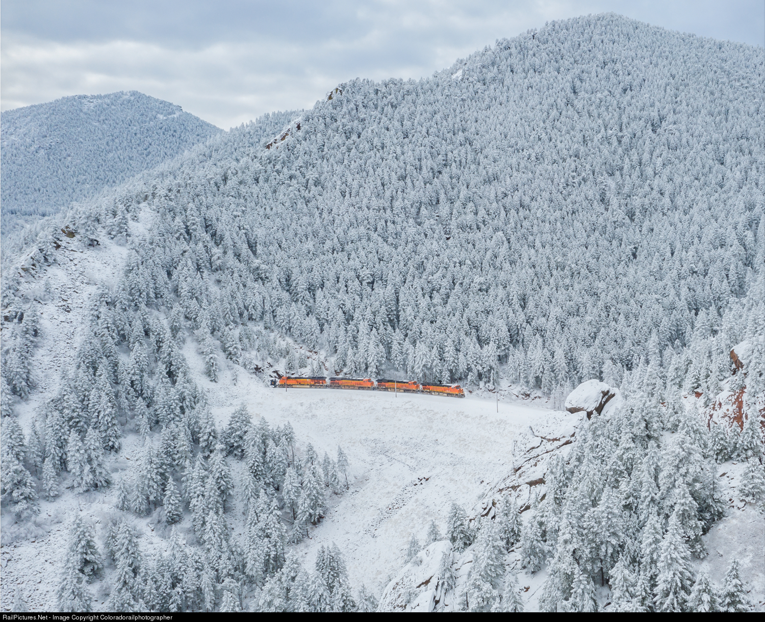 Winter’s grip is in complete flock of the Flatiron Range between Golden and Boulder. The daily Lincoln to Provo manifest is moving through the slabs of eternal granite in and out like model train in a winter wonderland. Shot on Mavic Pro 2. |
