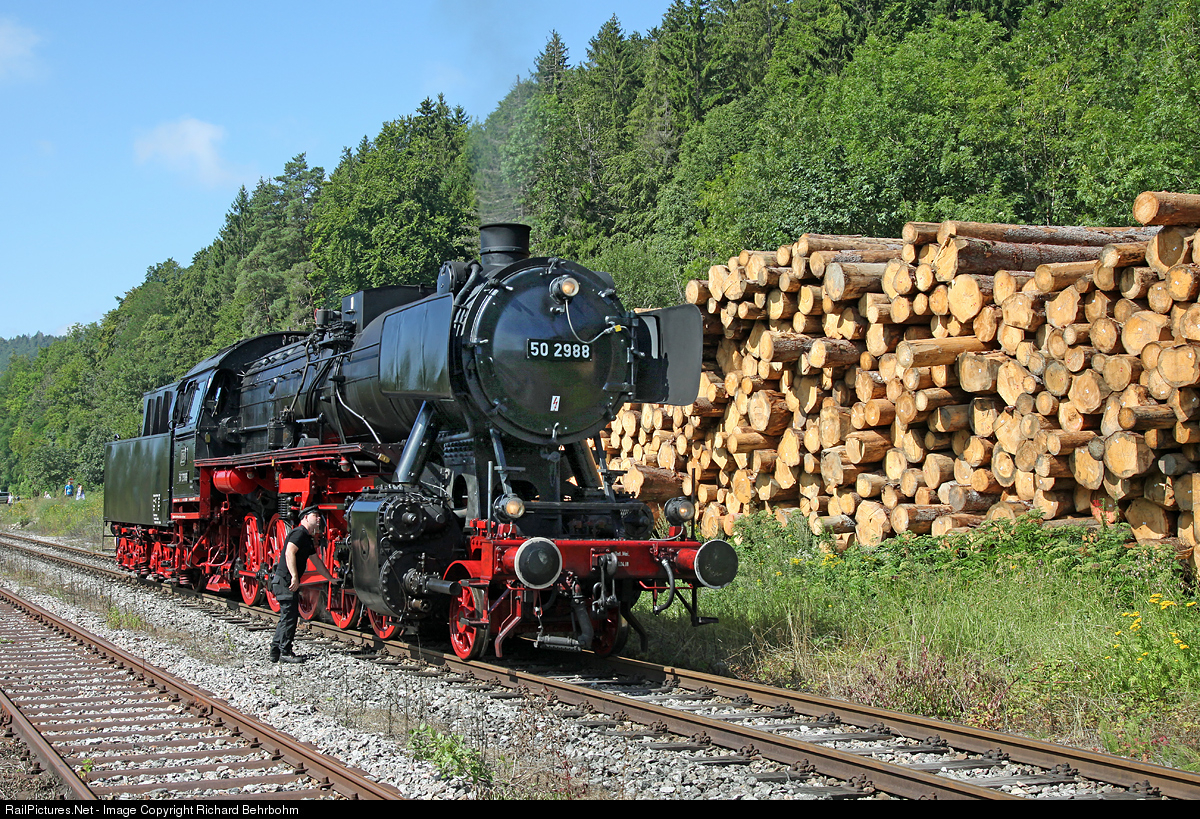 | Checking the locomotive before the next run from Weizen to Blumberg on the Sauschwänzlebahn. 50 2988 is a former steam locomotive of Deutsche Bundesbahn, built 1942 by Wiener Lokomotivfabrik Floridsdorf. |
