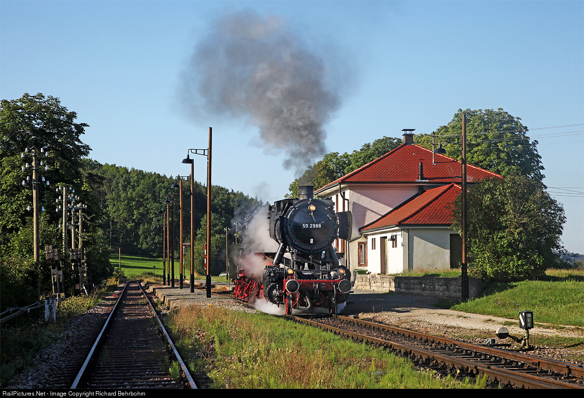 | Early in the morning, 50 2988 leaves Fützen and is running light engine on the Sauschwänzlebahn to Blumberg. |
