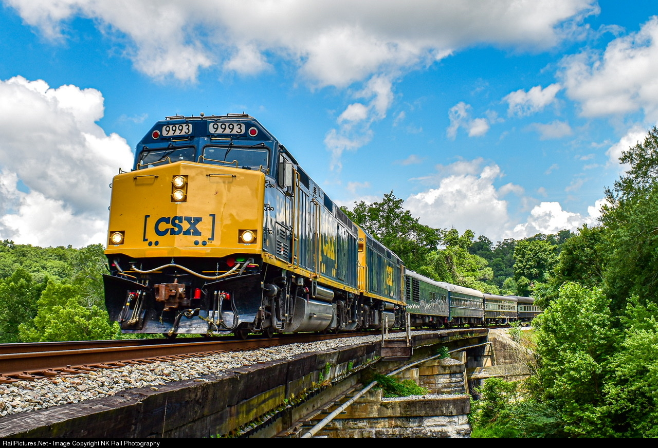 | After sitting on the main in Wauhatchie for approximately 54 minutes after swapping crews and having PTC problems, CSX P918-25 the CSX “Office Car Special” is seen heading south over the Chickamauga creek. After it’s trip to Chicago the train quickly turn back around and headed back south. After laying over in Nashville for the night the train was heading out at 6am. The train would stop at the Nissan plant in Smyrna for about 30 minutes than continued its way south towards Chattanooga. This was definitely one of the funniest chase I’ve had. |