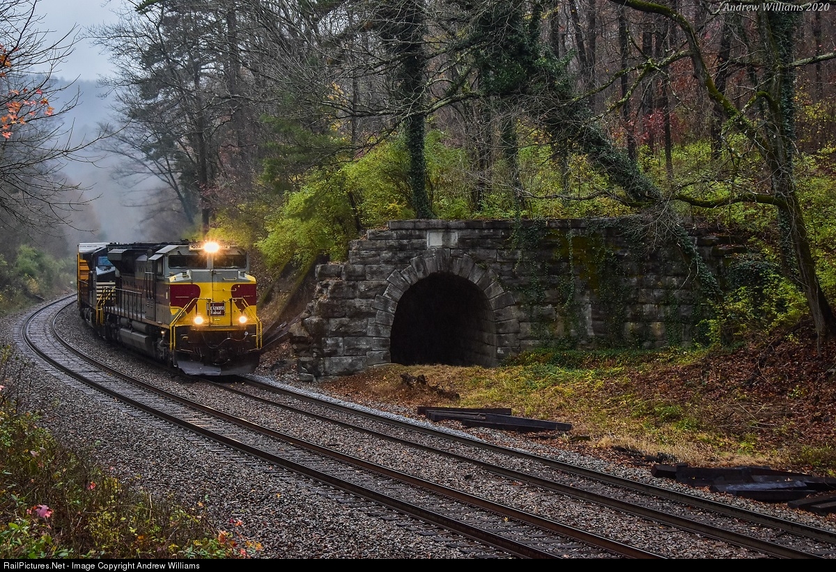 On a extremely bitter winded morning upon Raccoon Mountain; NS train 102 crests the mountain grade. Sitting right alongside the tracks, the Nashville & Chattanooga tunnel sits at the peak of the gradient infrustructure on the peice of railroad. Since 1858, the tunnel has been standing flawlessly. As Norfolk Southern train 102-30 seen passing along , the historic tunnel stand gaurd in the freezing sleet and rain. The Lackawanna carries the Chattanooga bound manifest train over CSX's Chattanooga Sub via trackage rights between Stevenson,AL and Chattanooga,TN.