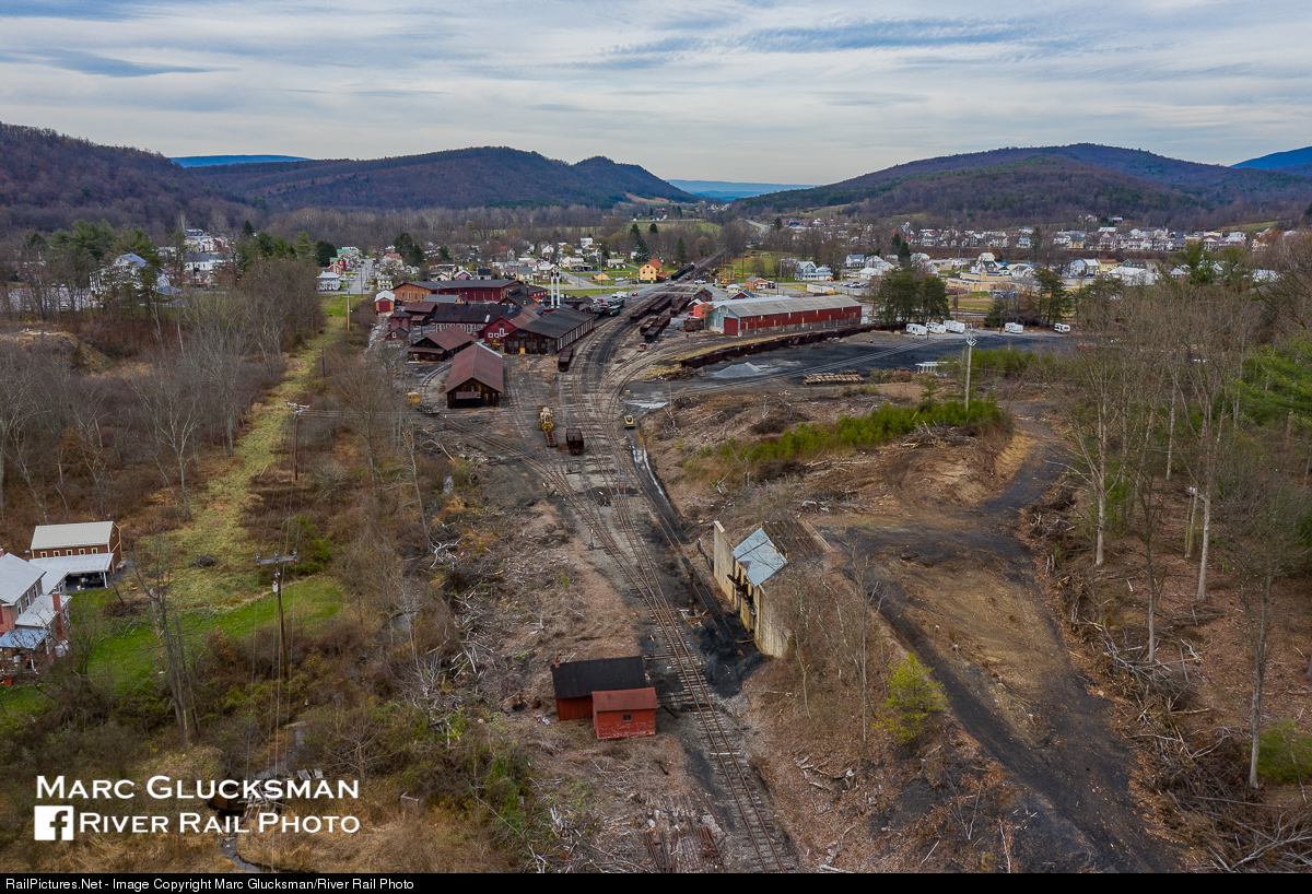 Clear The Scene. Looking from geographic south to north, the amount of brush clearing that has occurred at the the East Broad Top Railroad in Orbisonia, Pennsylvania is dramatically evident in this photo on Thursday, November 17, 2020. The coal dump in the foreground is one of many structures that the East Broad Top Foundation has committed to restoring in the near future, and will be functional for steam operations once the first engine is completed.