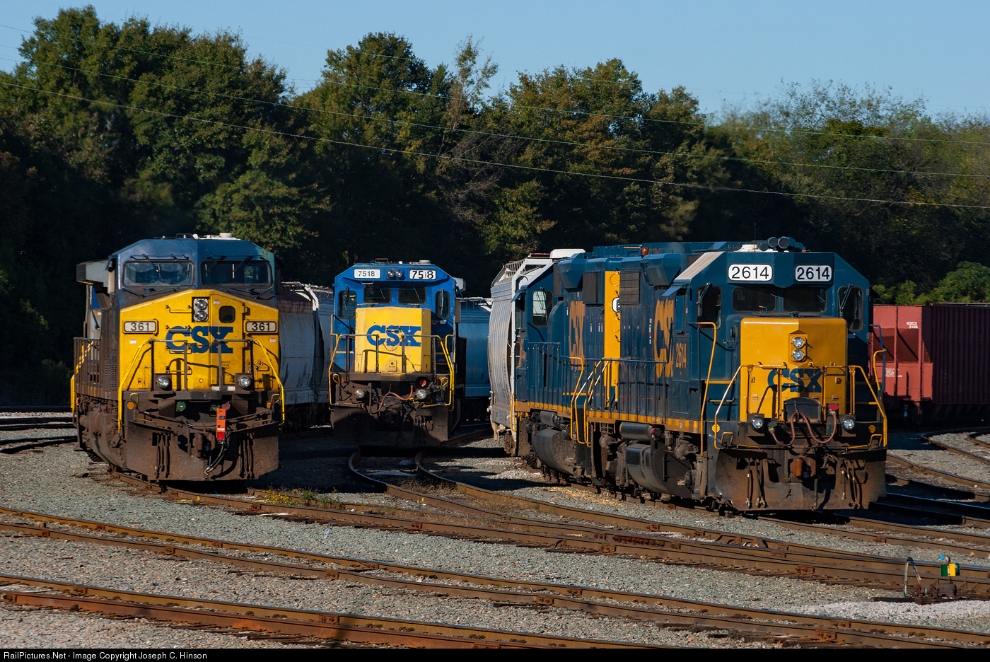 CSXT #361 is a General Electric AC44CW built for CSX in 1998. It's the most modern of the locomotives in this shot.
