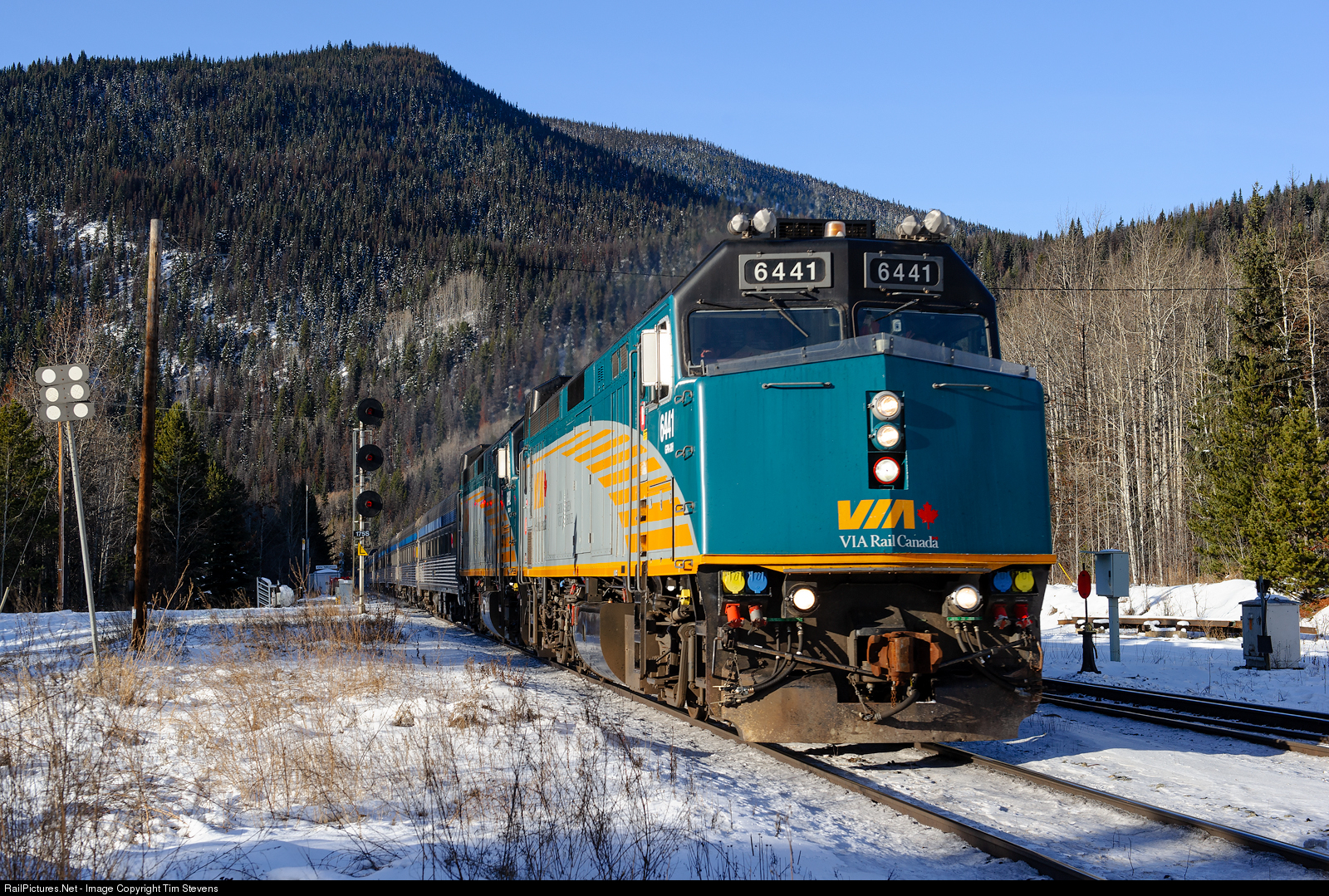 | A VIA Rail equipment move running as VIA #2 crosses the Continental Divide at Yellowhead heading for Winnipeg, MB with equipment for the long awaited re-start of "The Canadian" in mid-December. |