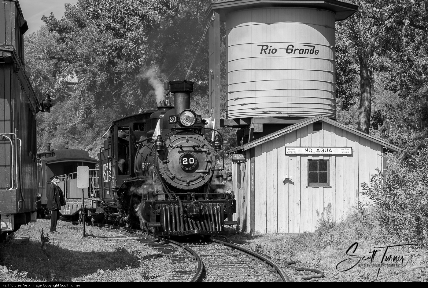 | It's Sunday morning on the 2nd of August and the crew is preparing RGS #20 for the day's excursions during the celebration of #20's return to service at the Colorado Railroad Museum. The conductor looks on as the fireman fills the tender in this timeless image of narrow gauge steam railroading. |