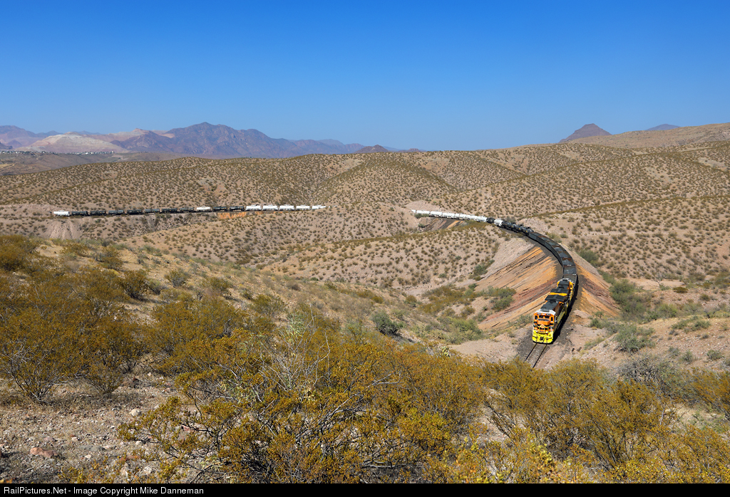 Hauling interchange traffic from Freeport McMoRan’s railroad operating from the giant copper mining complex at Morenci to Clifton, Arizona Eastern Railway’s South Siding to Clifton train works upgrade approaching Tunnel 6 south of Clifton, Arizona, on October 22, 2020.
