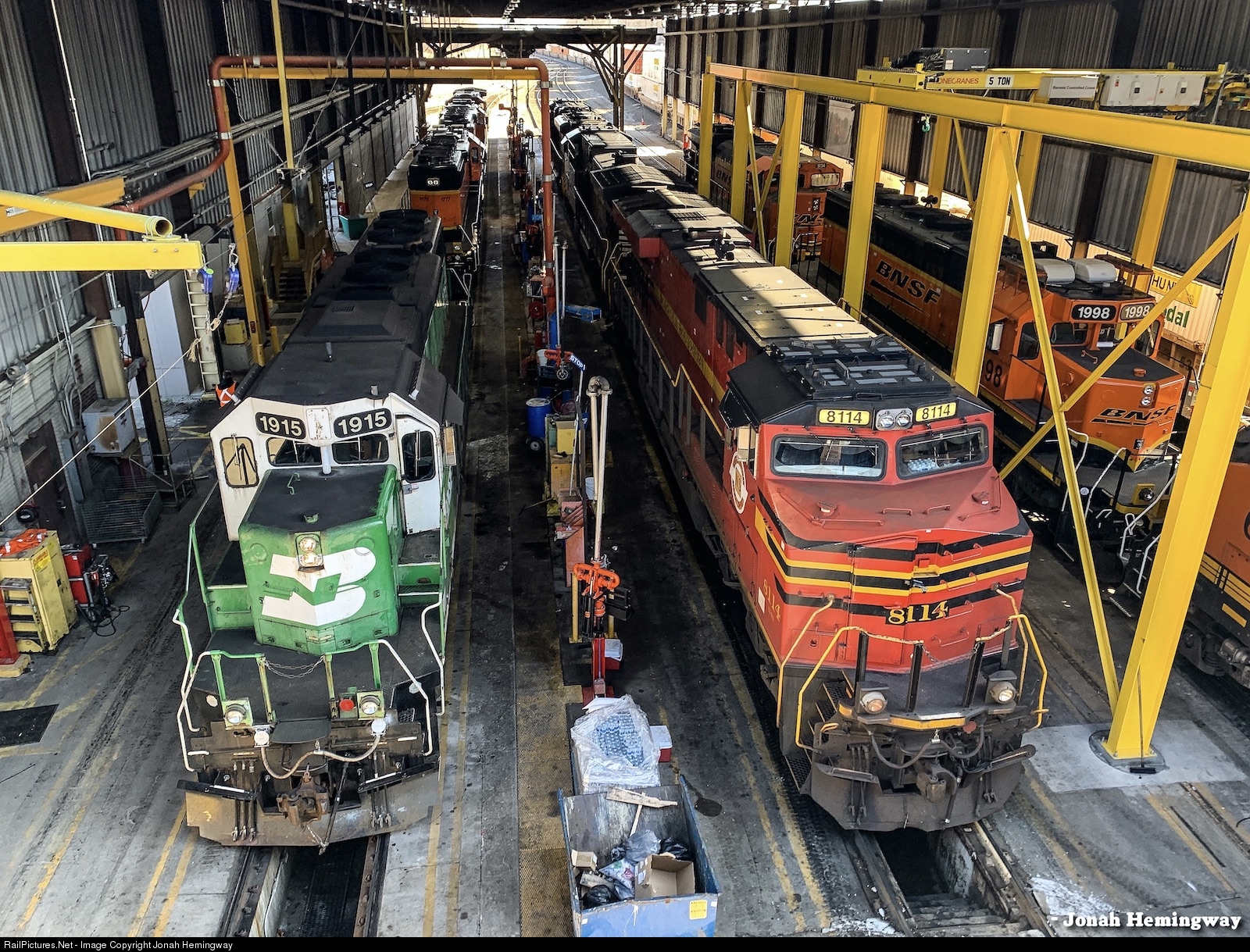 NS 8114 resting next to BNSF 1915 at the refueling facility.