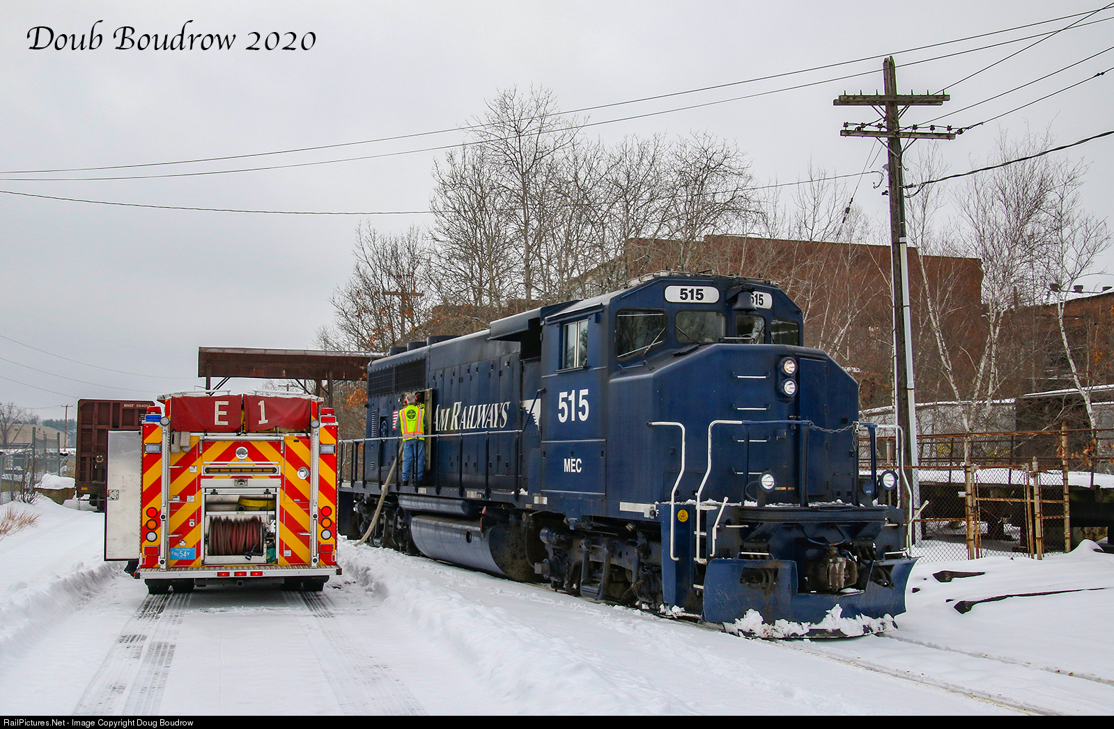 Pan Am local LA-3 is seen getting some assistance from Billerica Fire after running low on water working the shop lead.
