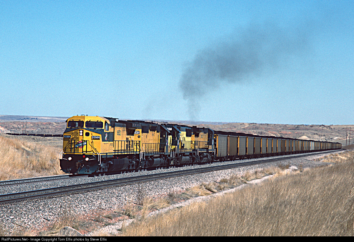 CNW 8652, 6845, 7017, 8515 have a loaded train near the Antelope coal mine.