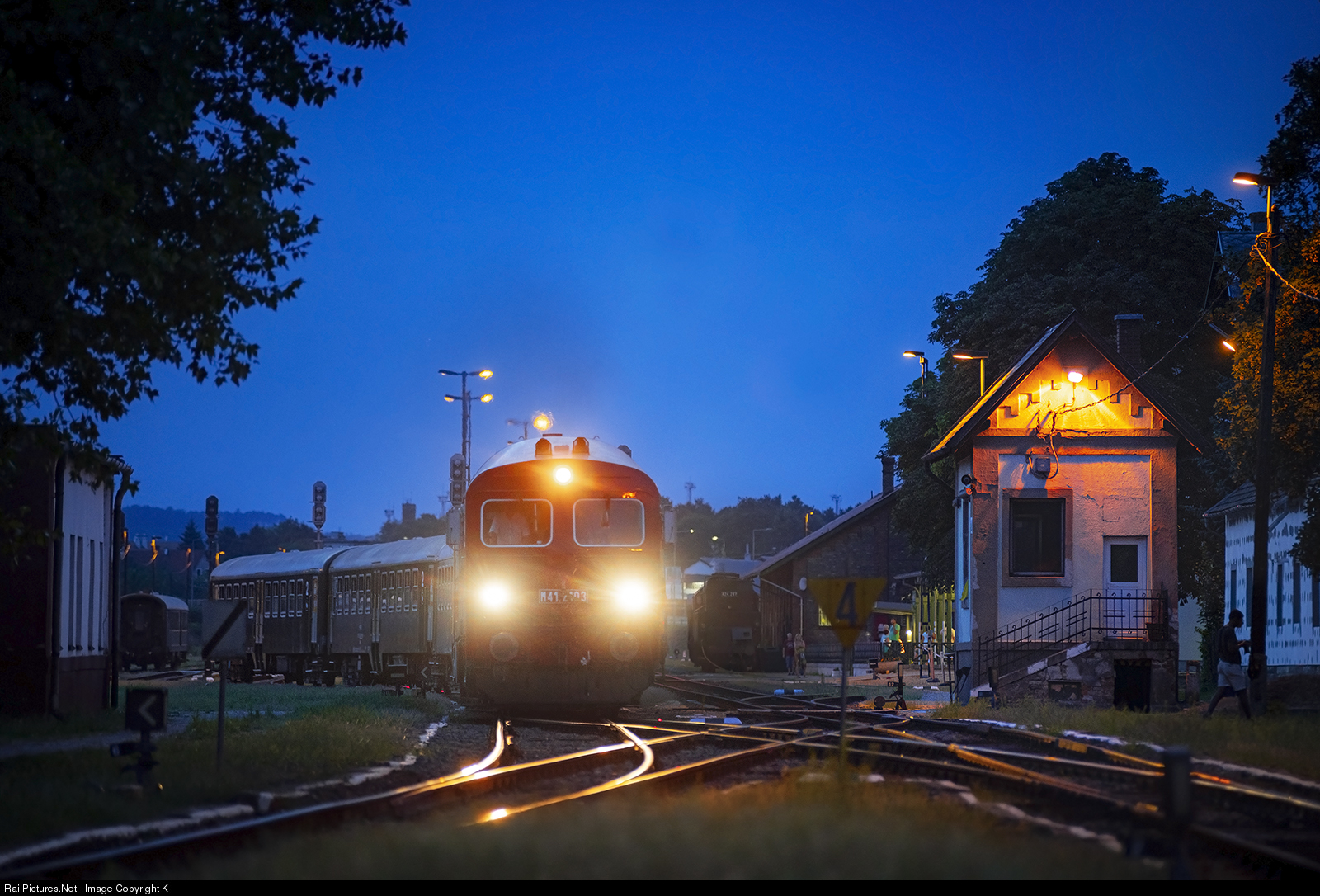 One of MÁV's heritage M41s leaves Tapolca with four Bhv cars in fitting livery. Just right of the loco is 424 247 taking on water for the run home, although it'll be hauled by a diesel to Budapest coupled to it's service car seen on the left. The state railway company - MÁV-Start- started to run two pairs of regular trains with historic power back in the summer of 2017 at lake Balaton's norther route. It developed to two full-on 'retro-weekends' for the 2019 and 2020 seasons featuring M40s (from the once 100 piece fleet today only 6 are in active service, half of it at MÁV-Nostalgia's historic fleet and the other half at MÁV's depos as yard reserves), M41s in old liveries, M62s in period- and original liveries (M62s doesn't haul passenger trains regularly), M61s (withdrawn almost 20 years ago) and 424 247: a 4-8-0 steamer recently put back to service.