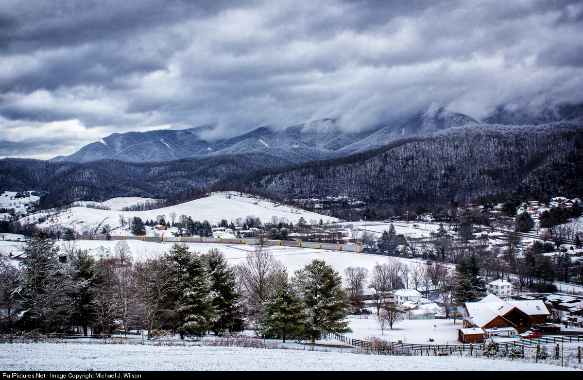 | The sound of Norfolk Southern train 393 fills the valley near Shawsville, VA on the morning of February 7, 2021 as it slowly crawls up Christiansburg mountain in Notch 8 along the former N&W mainline. |