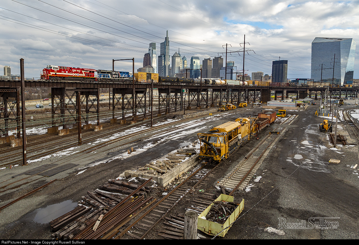 In what is probably the most photographed train on the east coast of 2021, Q410-14 pulls through Philadelphia, PA on the Pennsy High Line with ES44AH 911 and 3194 leading. All three units (911/3194/1776) were taken out of storage and placed onto Q410 as a rust busting run.
