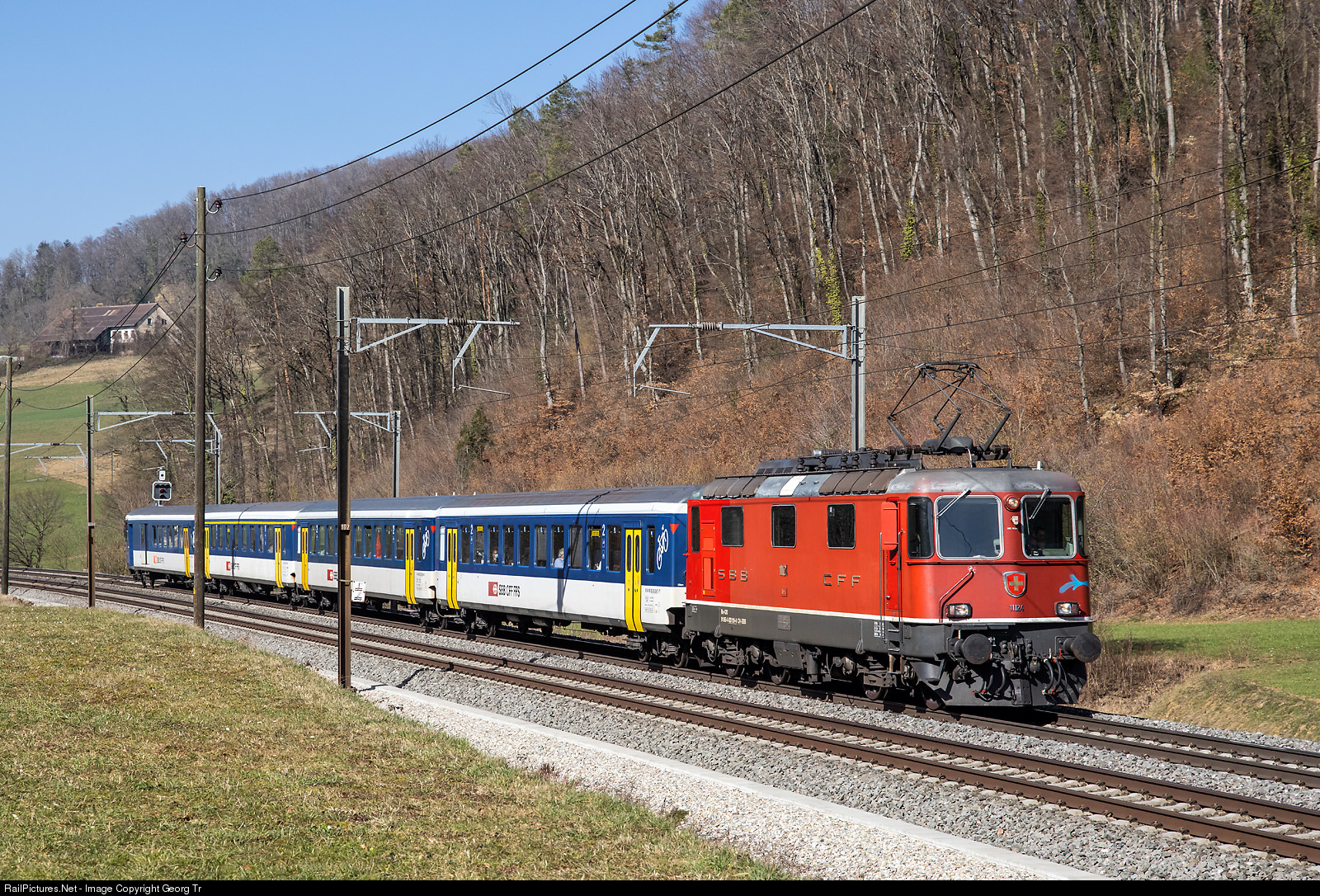 Still going strong! "Vintage" push-pull train with locomotive Re 4/4 II # 11124 (Re 420 # 124), built in 1967, standard cars type I from the 1960' and a cab car BDt type II in the rear. This short train is running the IC 70071 nonstop from Basel via Hauenstein to Zürich, substitute for the delayed ICE 71 from Hamburg to Chur, today. Usually, this train is running half an hour later as train IC 555 of the line IC 3. The delayed ICE 4 of the Deutsche Bahn ran as IC 555 from Basel to Zürich this day.