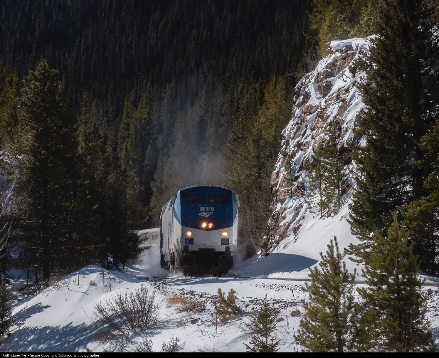 RailPictures.Net Photo: AMTK 19 Amtrak GE P42DC at East Portal, Colorado by Coloradorailphotographer