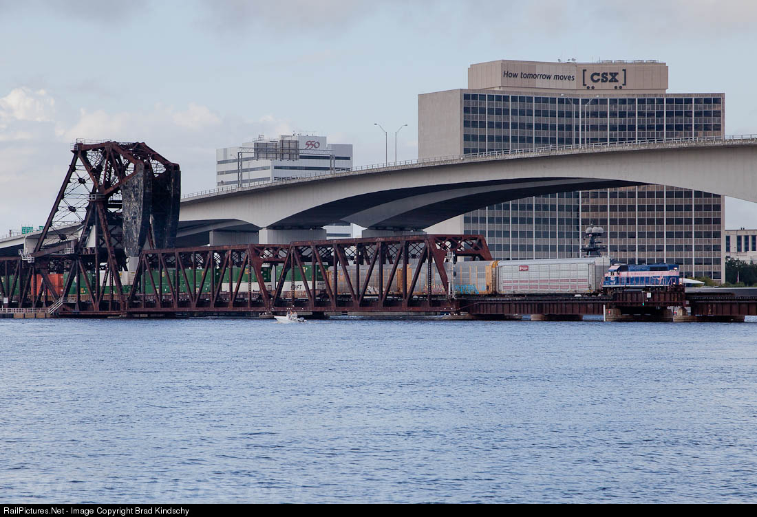 Job 74 returns from NS Simpson Yard with a cut of racks & intermodal, crossing the St Johns River in the shadow of CSX's Headquarters.