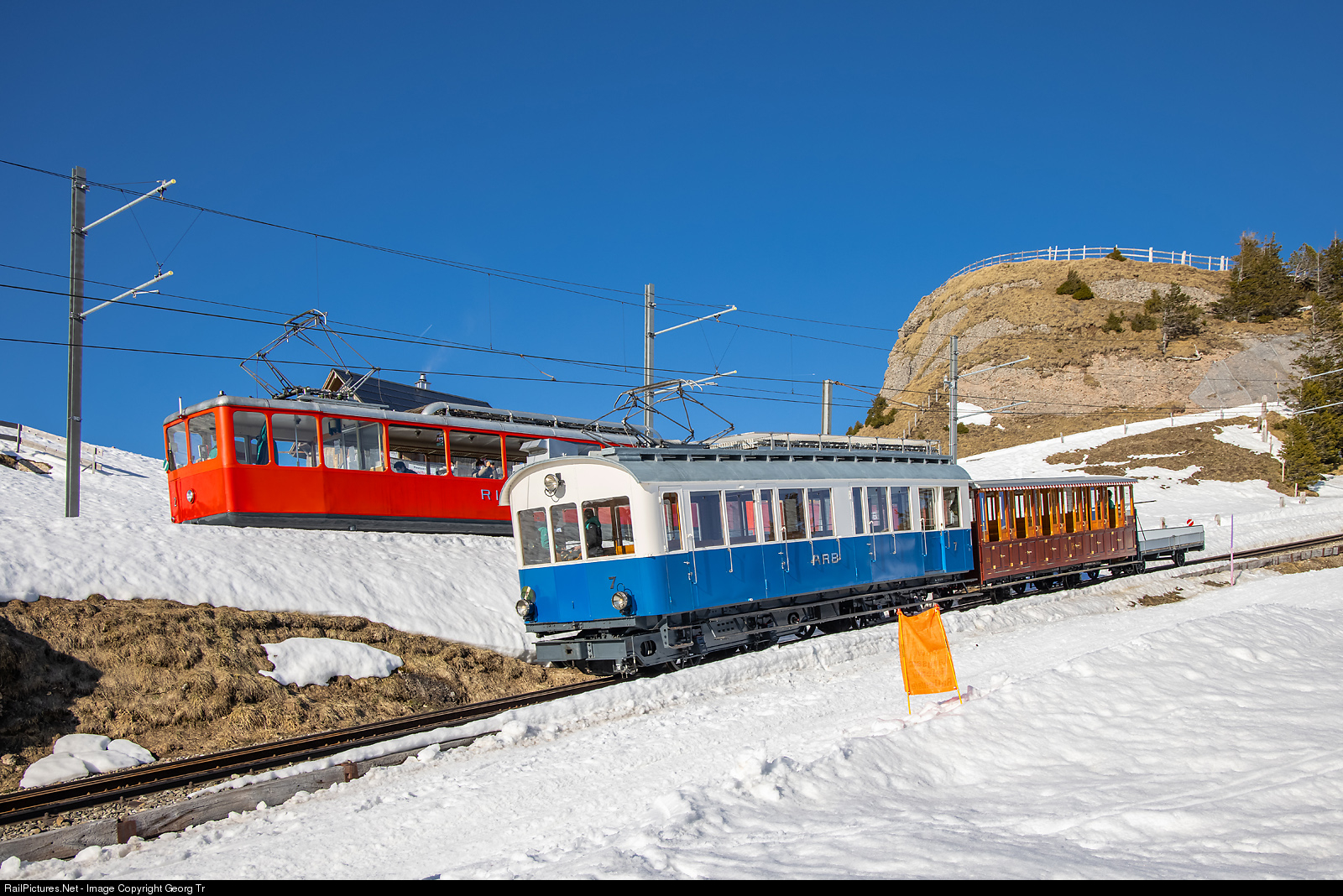 RailPictures.Net Photo: 2, 7 Rigibahnen Bhe 2/4, BDhe 2/4 at Rigi Kulm, Switzerland by Georg Trüb