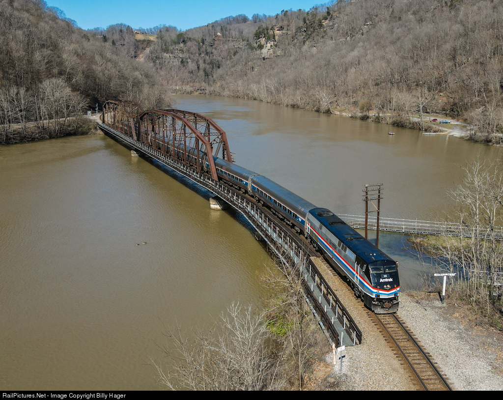 RailPictures.Net Photo: AMTK 145 Amtrak GE P42DC at Ansted, West Virginia by Billy Hager