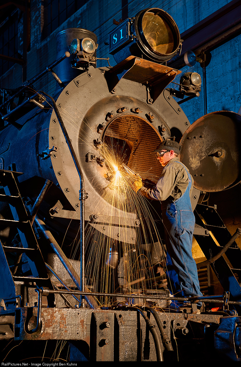 NNRY archivist Con T. works on the front of locomotive 81 during one of our night photo shoots.