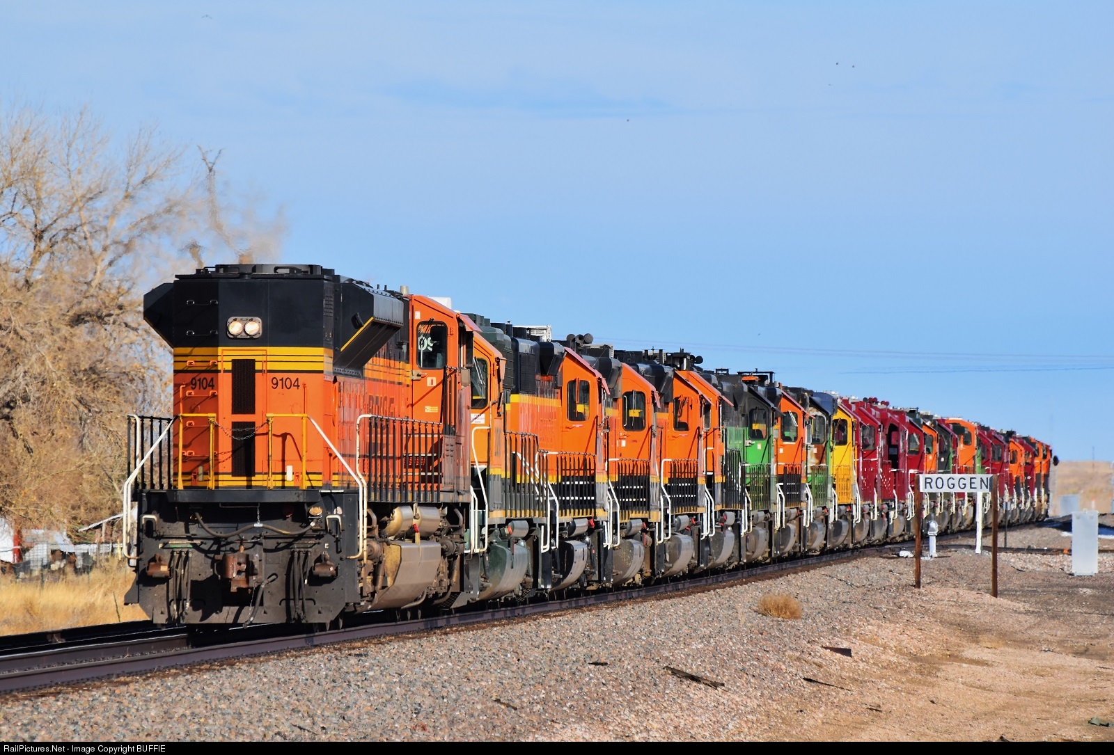 RailPictures.Net Photo: BNSF 9104 BNSF Railway EMD SD70ACe at Roggen, Colorado by BUFFIE
