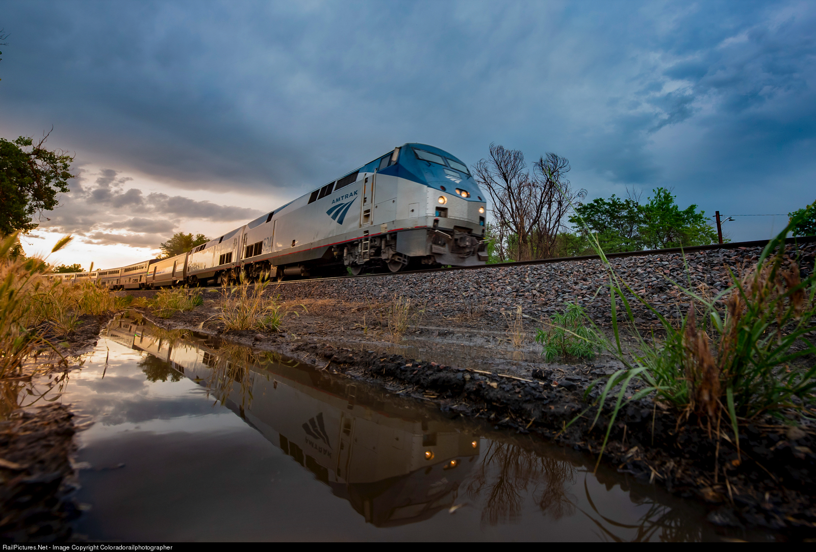 Hustling through Leyden at track speed on the back of a HP cell situated over the west suburbs of Denver, Colorado, Amtrak’s California Zephyr reflects on its stormy arrival into the Mile High City.