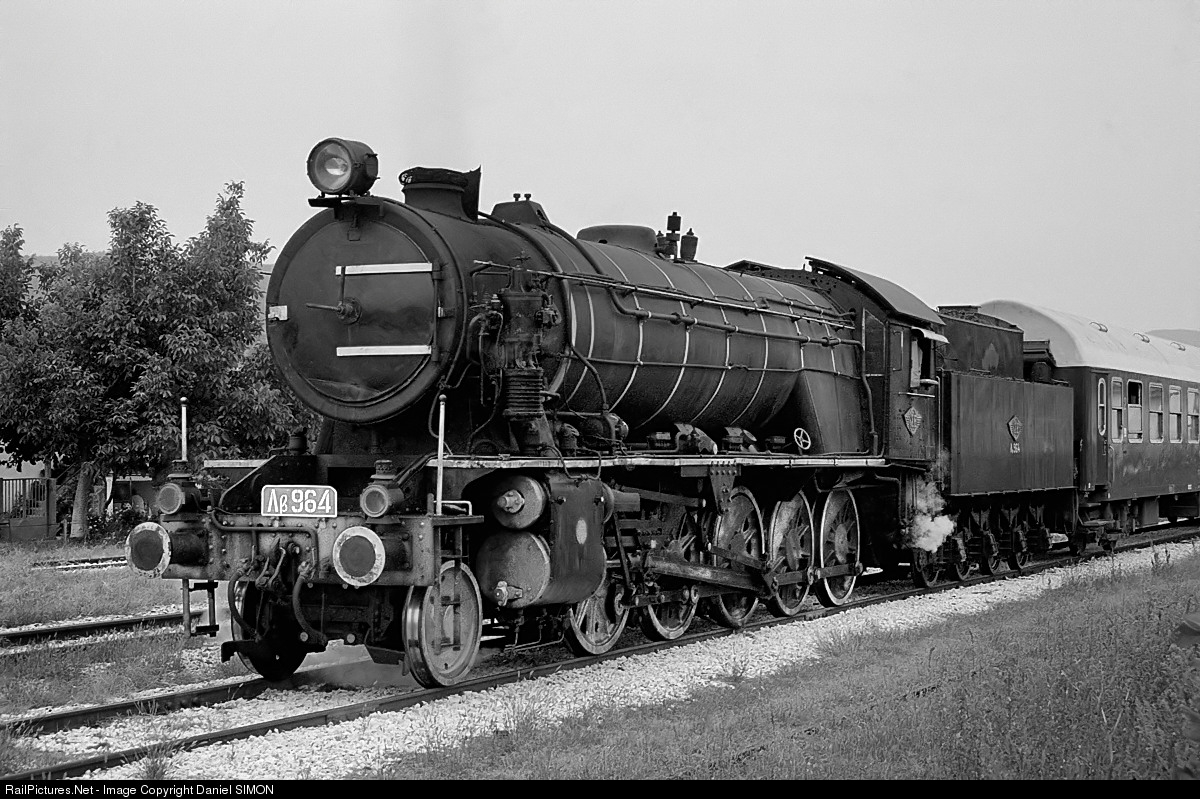 | Portrait of the Greek steam locomotive Lb 964 hauling a charter train between Xanthi and Drama. The Class Λβ (or Class Lb; Lambda-beta) is a class of 16 2-10-0 steam locomotives, ex-WD Austerity 2-10-0s purchased after the Second World War. All of them were previously stabled in Egypt and were transported to Greece, as part of the UNRRA mission in Greece (arrived at Thessaloniki port in 16 January 1946). They were given the class letters "Λβ" and numbers 951-966. |