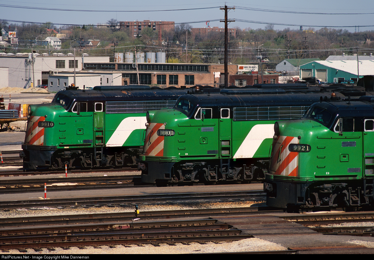 RailPictures.Net Photo: BN 9910 Burlington Northern Railroad EMD E9(A) at Aurora, Illinois by Mike Danneman