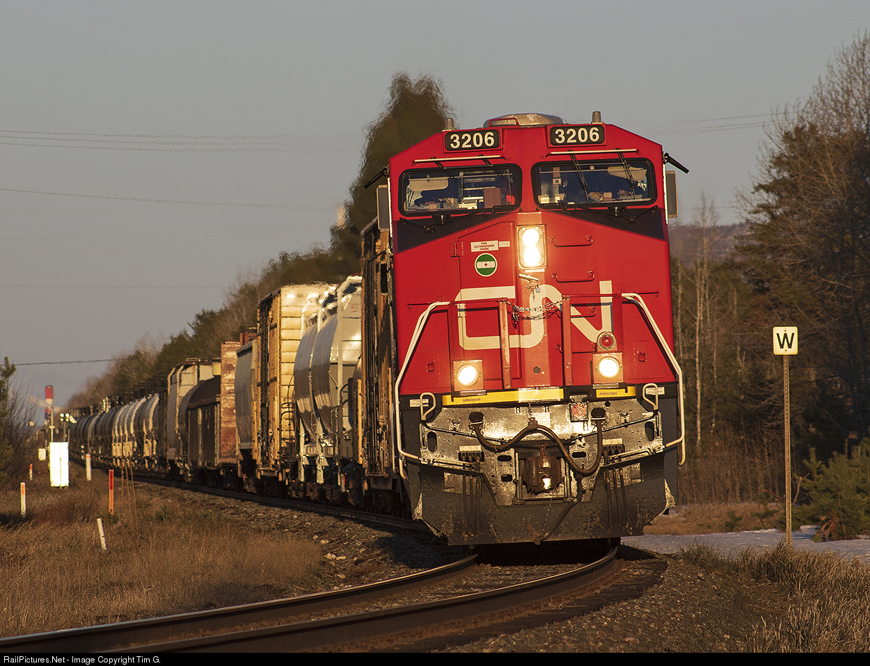 | The last rays of the day catch G841 as it begins it’s trek across the Kashabowie Sub. Looking much more like the regular wayfreight 437 instead of grain empties 841, CP interchange and resolute products make up the bulk of the train. Oddly enough the regular 437 would follow a few hours later running as solid grain empties. Figure that one out..... |