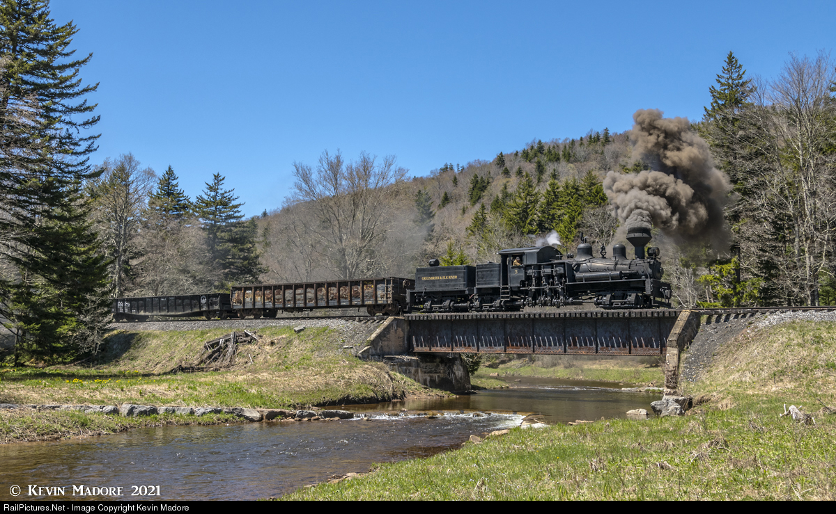 Most photo charters at the Cass Scenic Railroad work the well-known, 11 mile line from Cass to Bald Knob, as it winds its way up West Virginia's 3rd highest mountain. But not many trips venture up this line, which runs north from nearby Spruce, all the way to Cheat Bridge....and eventually to Elkins, more than 50 miles away. This line follows the Shaver's Fork of the Cheat River, crossing it numerous times and offering some spectacular riverside vistas. I've been visiting Cass for 18 years now and this May, 2021 trip organized by Lerro Photography was only the second time I've ever had the opportunity to photograph the line north of Spruce. This trackage is operated by the West Virginia Central Railroad, which is the freight division of the Durbin & Greenbrier Valley Railroad, and also the operator of West Virginia's Cass Scenic Railroad State Park. So, subject to certain restrictions imposed by the FRA, most of the steam and diesel equipment operated by the Durbin & Greenbrier at it's Cass, Durbin, Cheat Bridge and Belington-based operations can theoretically run on any of the associated track. It certainly offers some interesting possibilities for future excursions in "Wild Wonderful West Virginia."