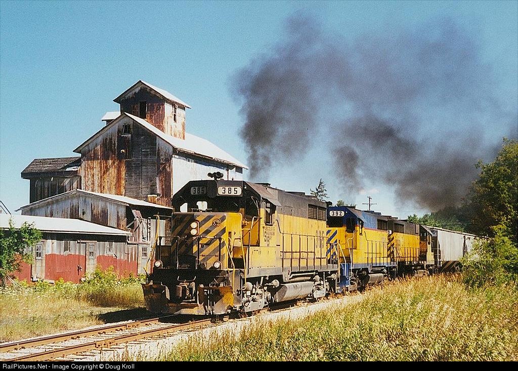 | Since they ride on trucks from Alco trade-ins, these GP35's think they have to smoke like an Alco, here southbound returning to Owosso. |