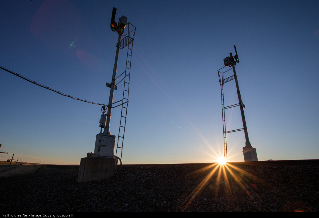 As the sun rises over New Mexico, the intermediate signals at milepost 722 on the Raton Sub stand guard waiting for Amtrak's daily trip across the region