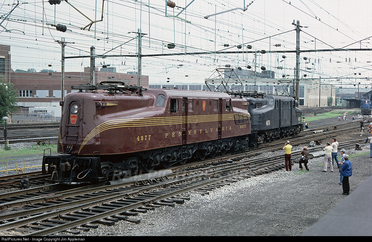 In this view, NJT GG1s 4877 & 4876 are taken off the train at the station and will be turned with PRR 4877 leading, finishing the trip to Philadelphia.