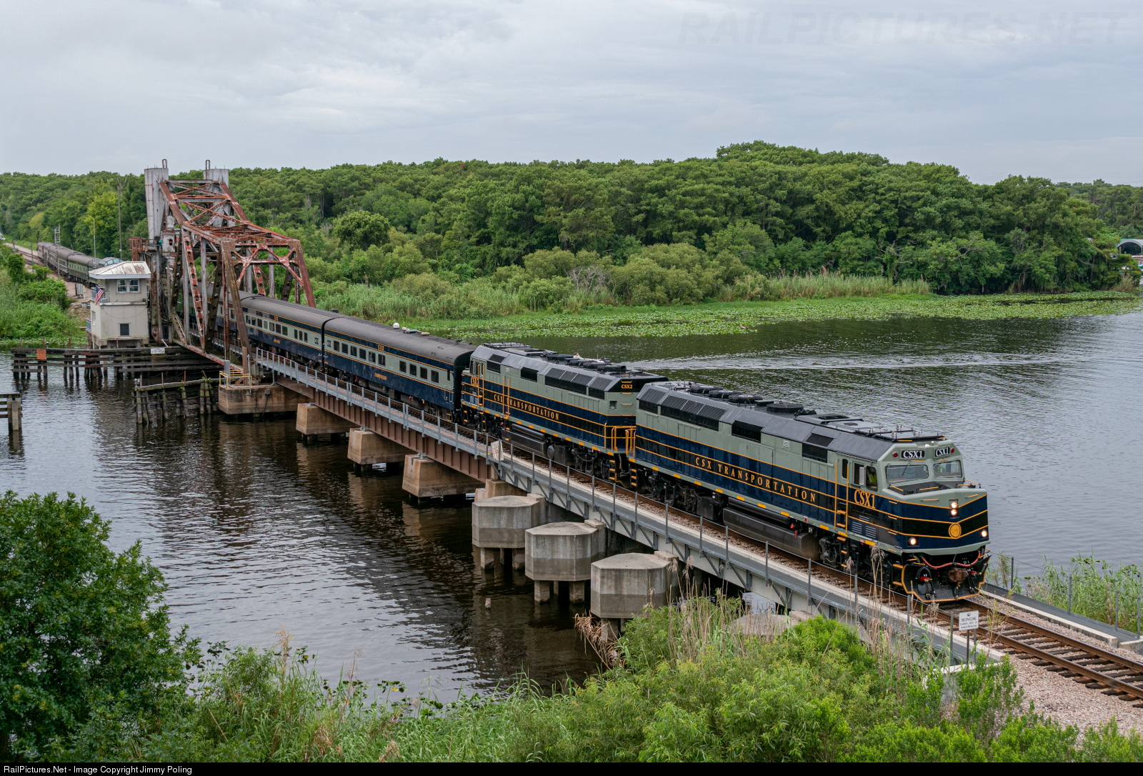 CSX P001 crosses the ACL era Lake Monroe drawbridge over the St. Johns river.