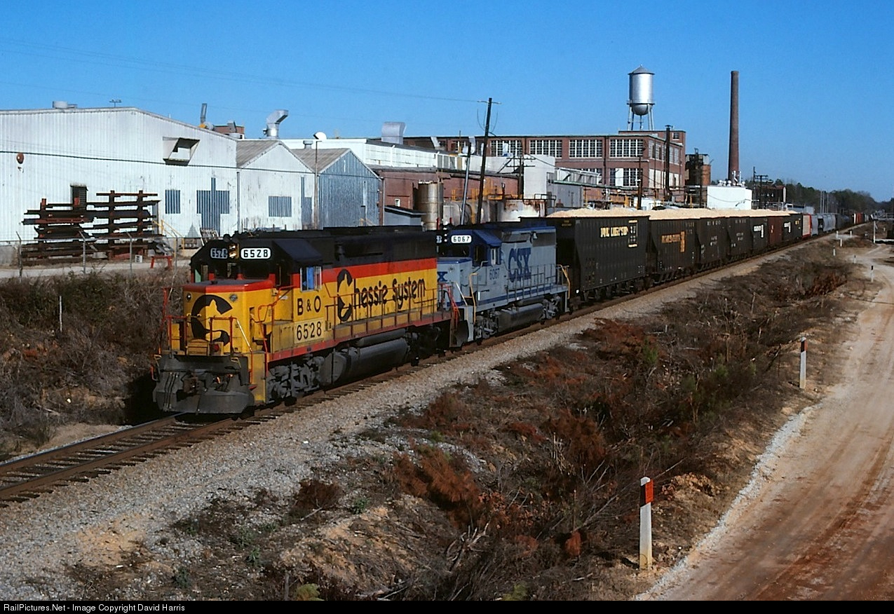 CSX freight passes behind the largest textile mill in Opelika. A major source of jobs and city revenue for decades, it doesn't have much of a future, even in 1987. I do not think anything remains of the buildings and other facilities.
