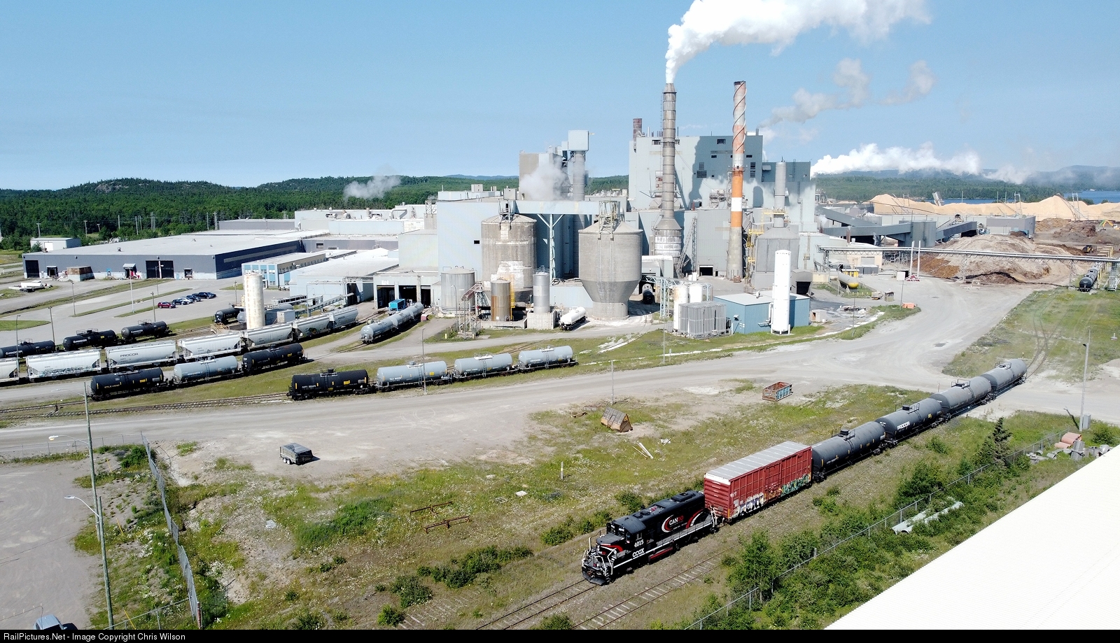 Cando switches out empty bunker c oil cars inside the large Terrace Bay mill. That pesky warehouse bottom right!
