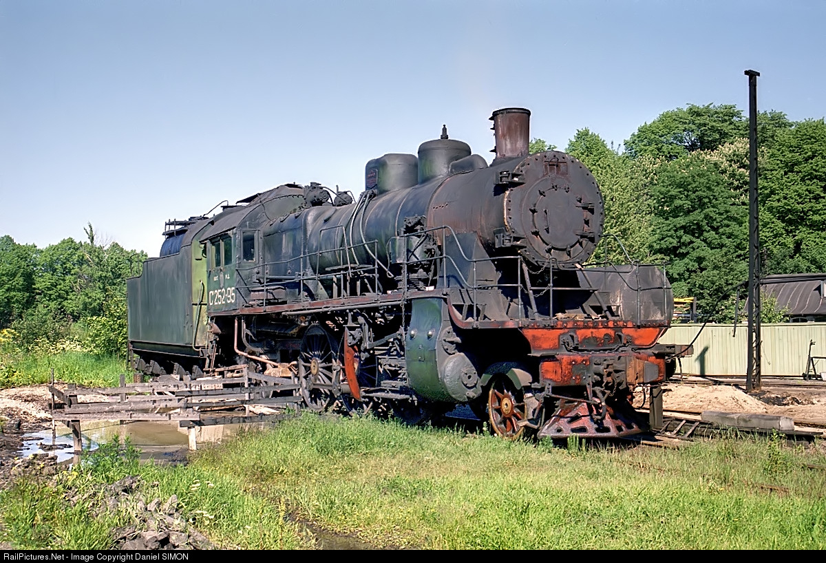 | Back in 1990, the Russian steam locomotive Su252-95 was no more in active service but was used as a stationary boiler and parked next to some industrial building that requires hot water or heating.