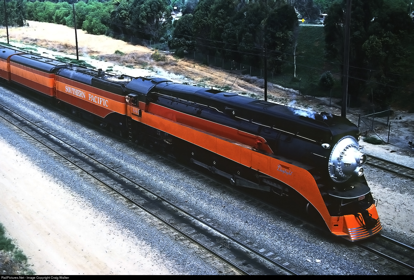 From 1902 until 1968, the Southern Pacific and Chicago, Rock Island & Pacific combined to operate the Golden State Limited. Connecting Chicago with Los Angeles, this train’s route was, for the most part, crossing the continent at a lower altitude than the other routes, with the highest elevation being 6,600-feet (2,000 m) near Corona, New Mexico. This also resulted in the longest distance to travel between these two cities, with a distance of 2,340 miles. From Chicago, the train traveled on the Rock Island through Kansas City to Tucumcari, New Mexico, where it was handed off to the Southern Pacific. The SP from Tucumcari traveled through El Paso, Texas, and the westward through Tucson and Phoenix, Arizona, to Los Angeles. Westbound, the train was numbered 3, with 4 being the number of the eastbound train. Which is a long setup to explain why Southern Pacific 4-8-4 4449 has the Number 4 in its train indicators as it passes the railroad's West Colton Yard on its way to the World’s Fair in New Orleans, Louisiana. The 1941-built Lima locomotive, resplendent in its Daylight paint, will be treading the same route as the eastbound Golden State Limited from LA to El Paso for the first stretch. (Colton, California – May 15, 1984)