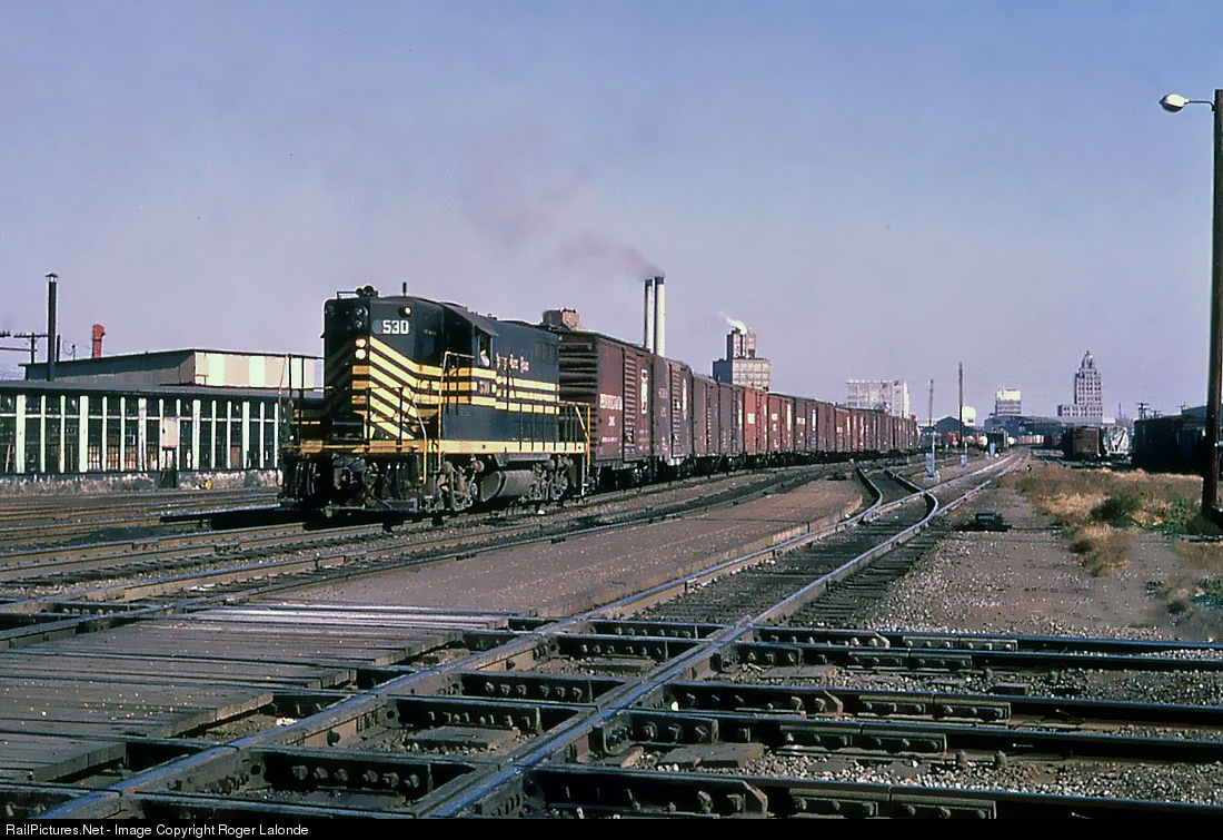 Nickel Plate Road GP9 530 working for new owner N&W is crossing the Illinois Central diamonds at Decatur, Illinois in November 1964. Photo from my collection, no photographer information on slide.