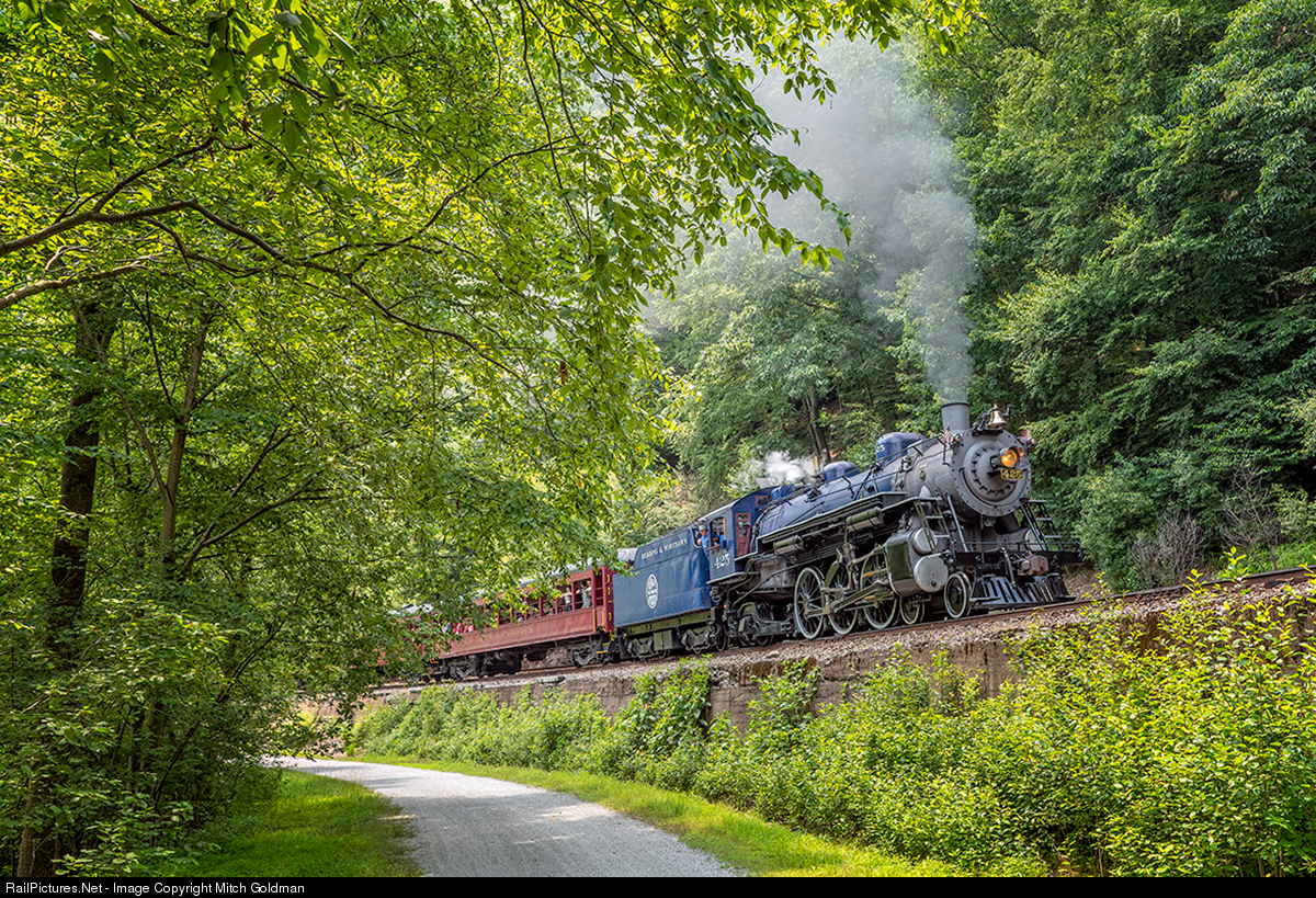 Reading & Northern's 4-6-2 No. 425 climbs the grade of the former Lehigh Valley right of way, riding "the wall" while paralleling the former CNJ line, which has since been converted to a rails-to-trail rouite through the Lehigh Gorge. Unlike the the previous two days, leaving after the 11 AM train, I took a chance, and a long hike into the Gorge and... what do you know? Got me a nice shot of the 1 pm train - in the Summer!