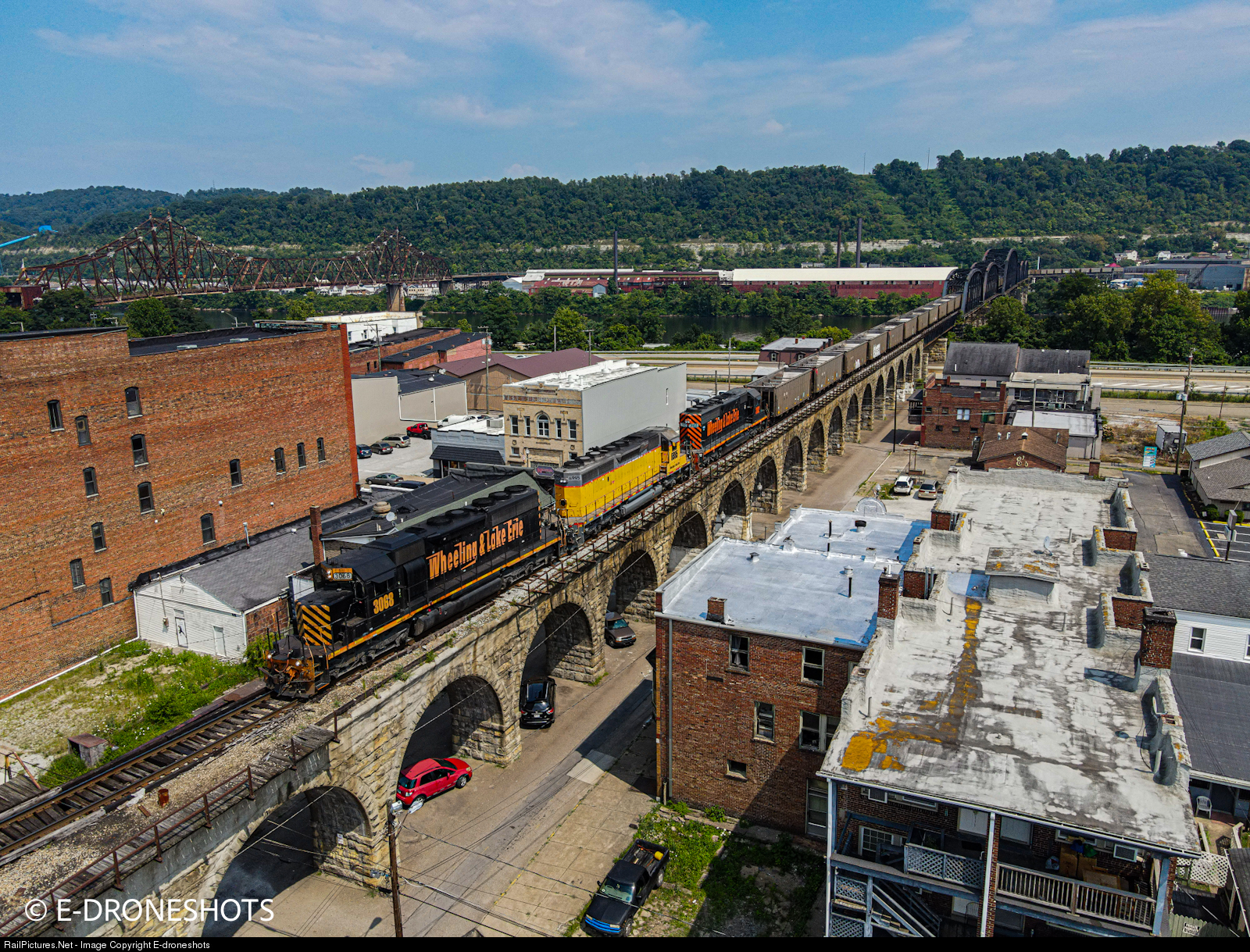 RailPictures.Net Photo: WE 3068 Wheeling & Lake Erie EMD SD40-2 at Bellaire, Ohio by E-droneshots