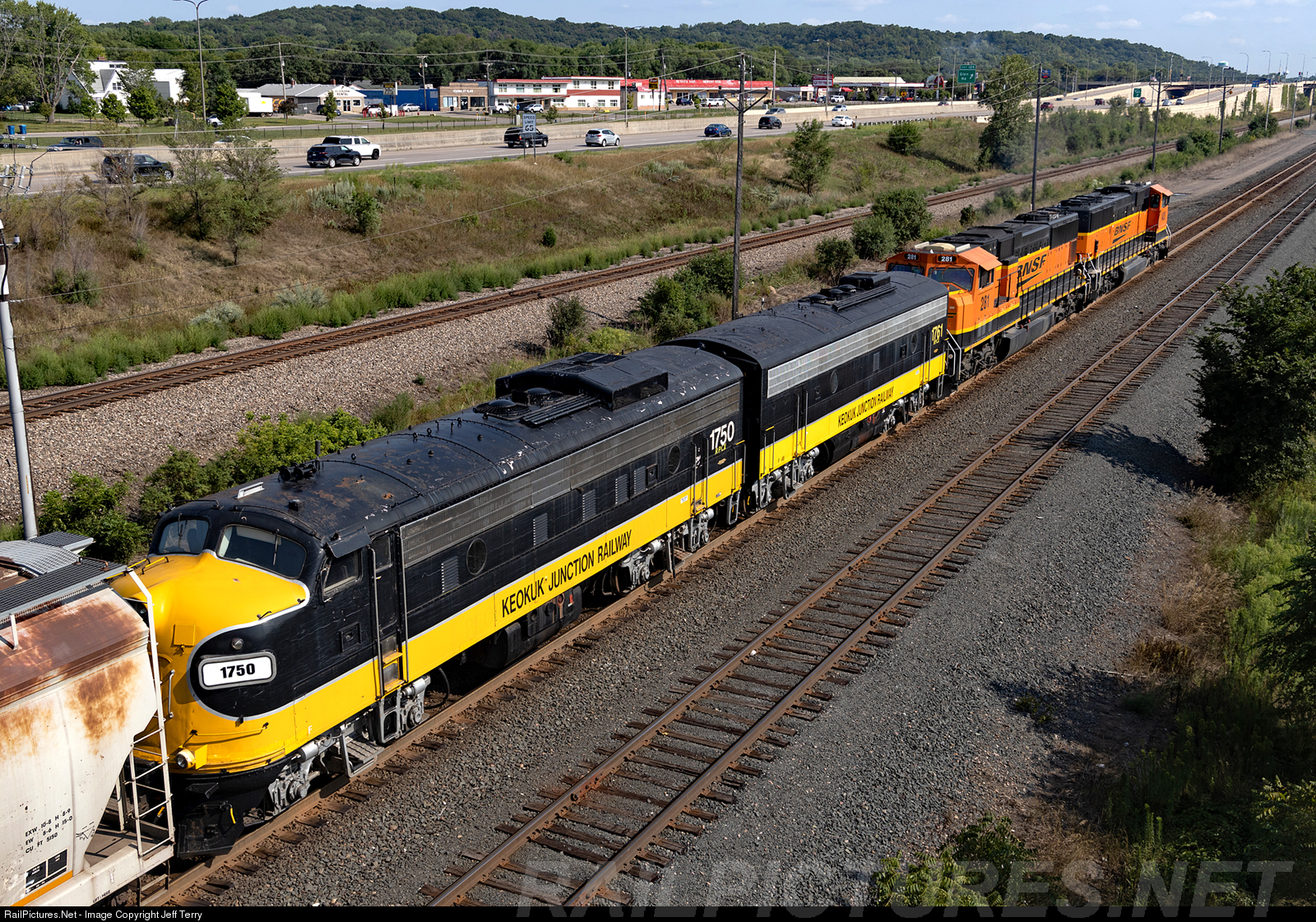 In the consist of the BN-CP Transfer on this hot August evening are Keokuk Junction Railway F9's 1761 and 1750, which are headed to their new owner in Saskatchewan. It's not very often that you see F units in the consist of a freight train.