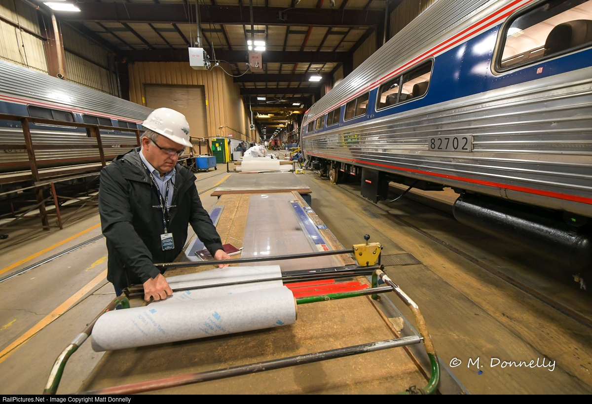 Blair Slaughter of Amtrak's Rolling Stock Engineering department, cuts a section of Amtrak Blue vinyl striping. He's been involved in some of Amtrak's most iconic livery designs and is a pleasure to work with. Learn about his experience in the Amtrak YouTube video on Designing Liveries https://youtu.be/hPFK4GCfXPA
