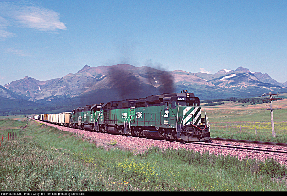 RailPictures.Net Photo: BN 2205 Burlington Northern Railroad EMD GP30 at East Glacier, Montana by Tom Ellis photos by Steve Ellis