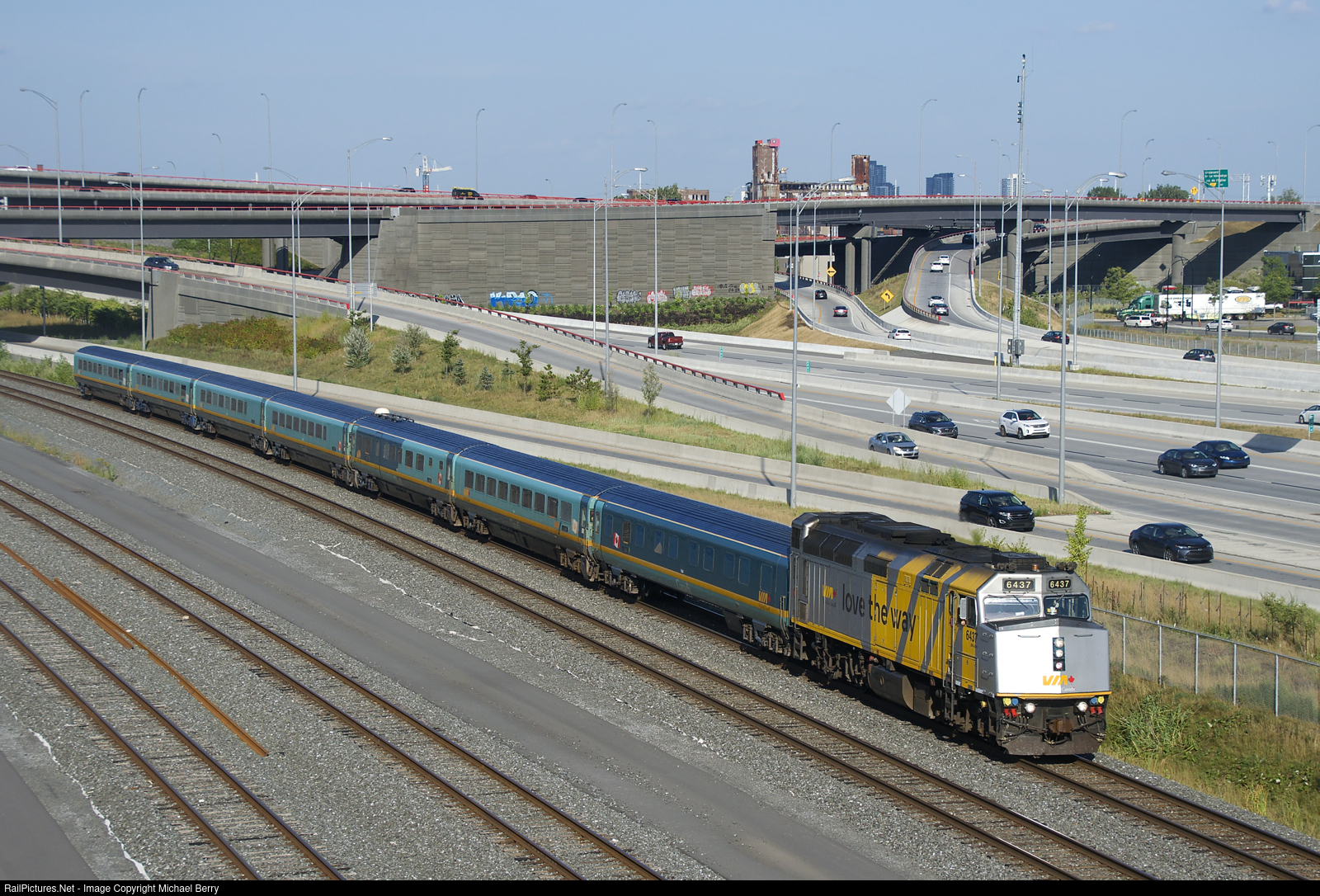 | Return of Renaissance cars to the corridor. Monday saw an increase in VIA Rail service throughout the Windsor-Quebec City corridor, necessitating the return of Renaissance trainsets for the first time since before the start of the pandemic. Here Quebec City-Ottawa VIA 37 has wrapped VIA 6437 and seven Renaissance cars as it passes the Turcot interchange. |