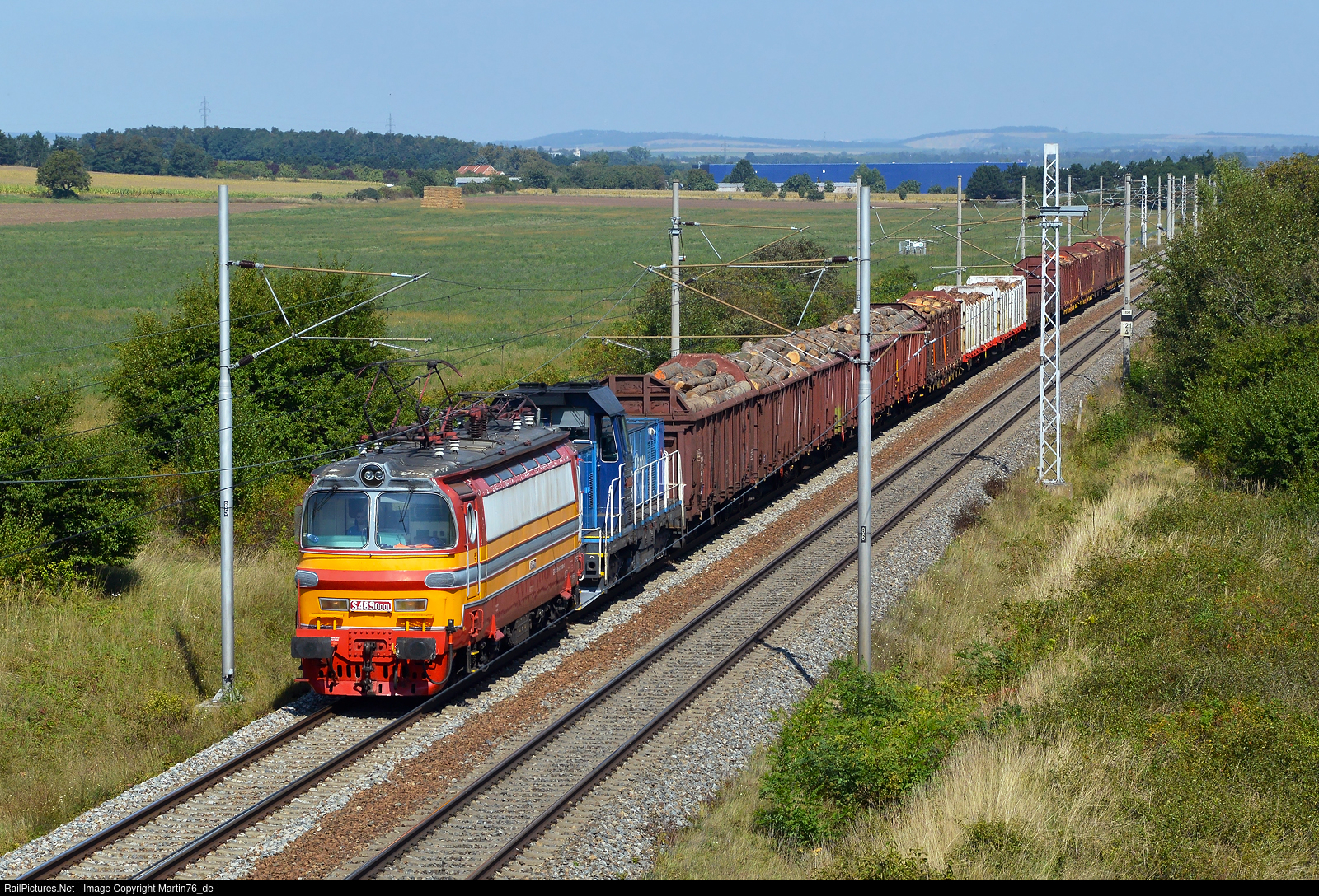 The retro electric locomotive S489.0001 hauling freight train Nex 45027 from Brno-Malomerice to Breclav.