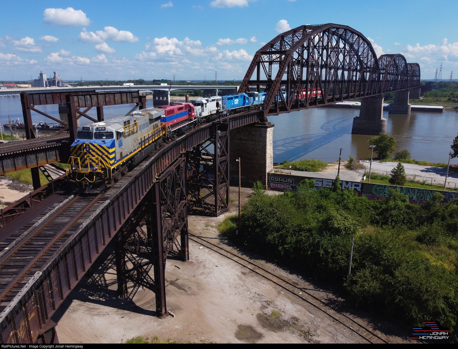 A former Citirail ES44AC nose out on the back of a power move crossing MacArthur bridge.