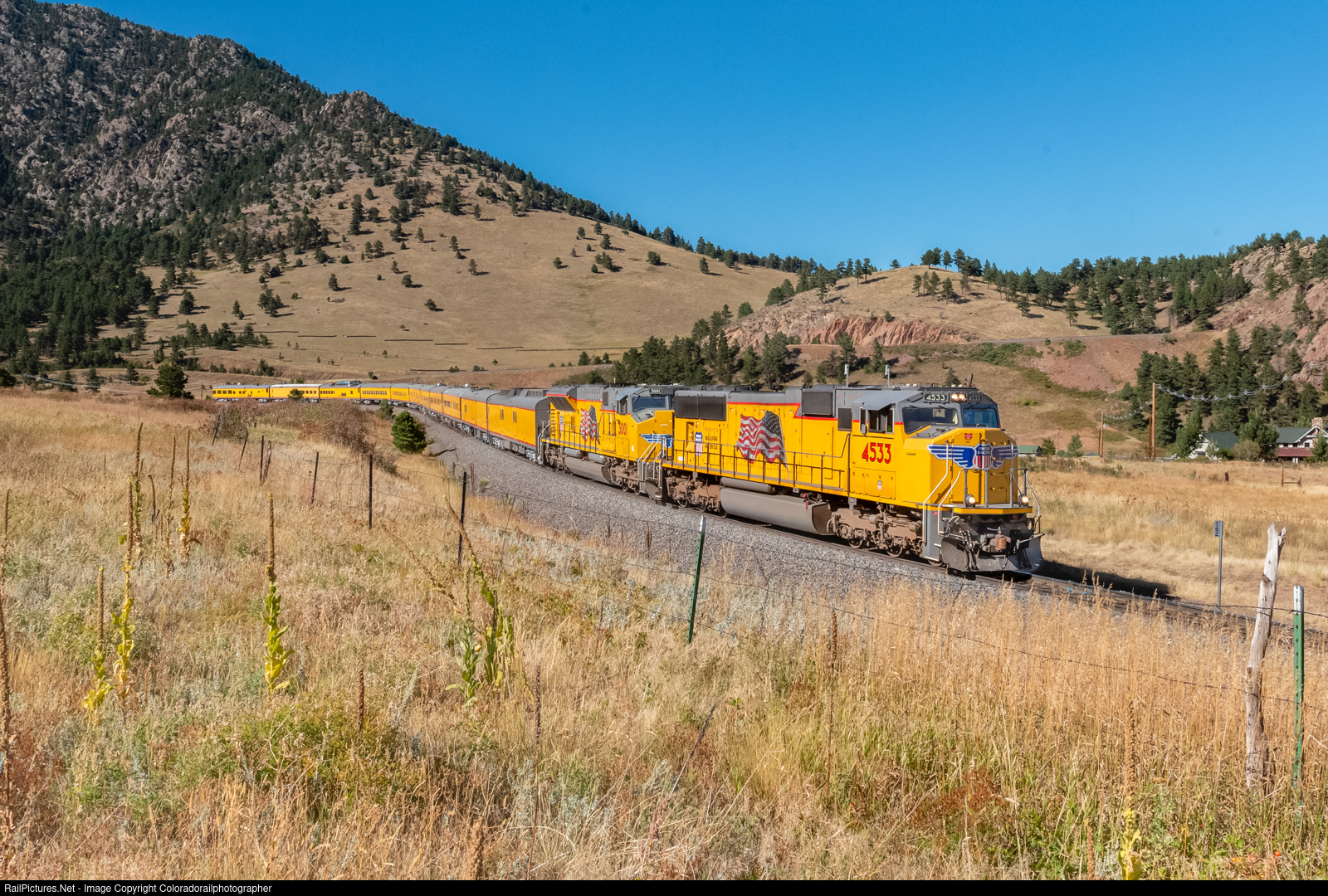Album created by member Ellis Simon | Album Views: 24,508 | | See beautiful diesel locomotives in UP's traditional armour yellow livery and special commemorative paint schemes pulling long trains of yellows cars reminiscent of the days when UP domeliners seemed to go Everywhere West.